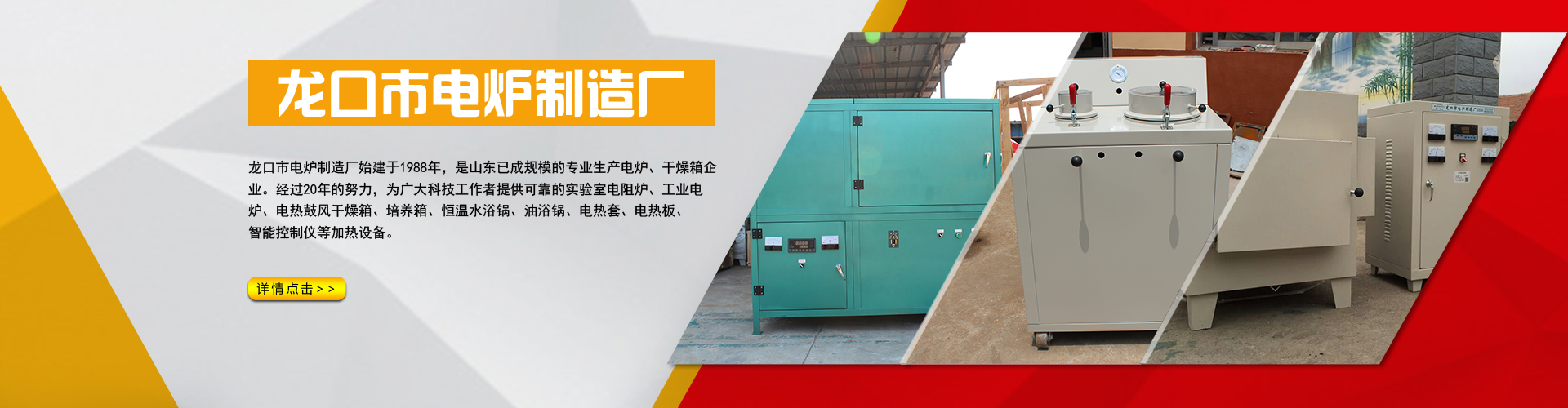 龍口市電爐制造廠始建于1988年,為山東規模專業生產電爐、干燥箱企業。經過20年的努力,為廣大科技工作者提供可靠的實驗室電爐馬弗爐灰吹爐、實驗電爐工業電爐試金爐、箱式電阻爐、臺車式電阻爐、電熱鼓風干燥箱、培養箱、恒溫水浴鍋、油浴鍋、電熱套、電熱板、智能控制儀等加熱設備。產品暢銷國內各大院校科研機構、工廠礦山、以良好的產品質量,完善的售后服務受到了客戶的好評。 公司擁有一批長期從事設計、研制的高級工程師和專業技術人員。與國內眾多科研院所合作開發具有世界水平的各種非標特種加熱設備,今后我們將不斷努力,依據客戶的需要,改進完善產品性能和檔次,我們忠心期待您的指導和支持。 本廠設有儀器公司、化玻公......